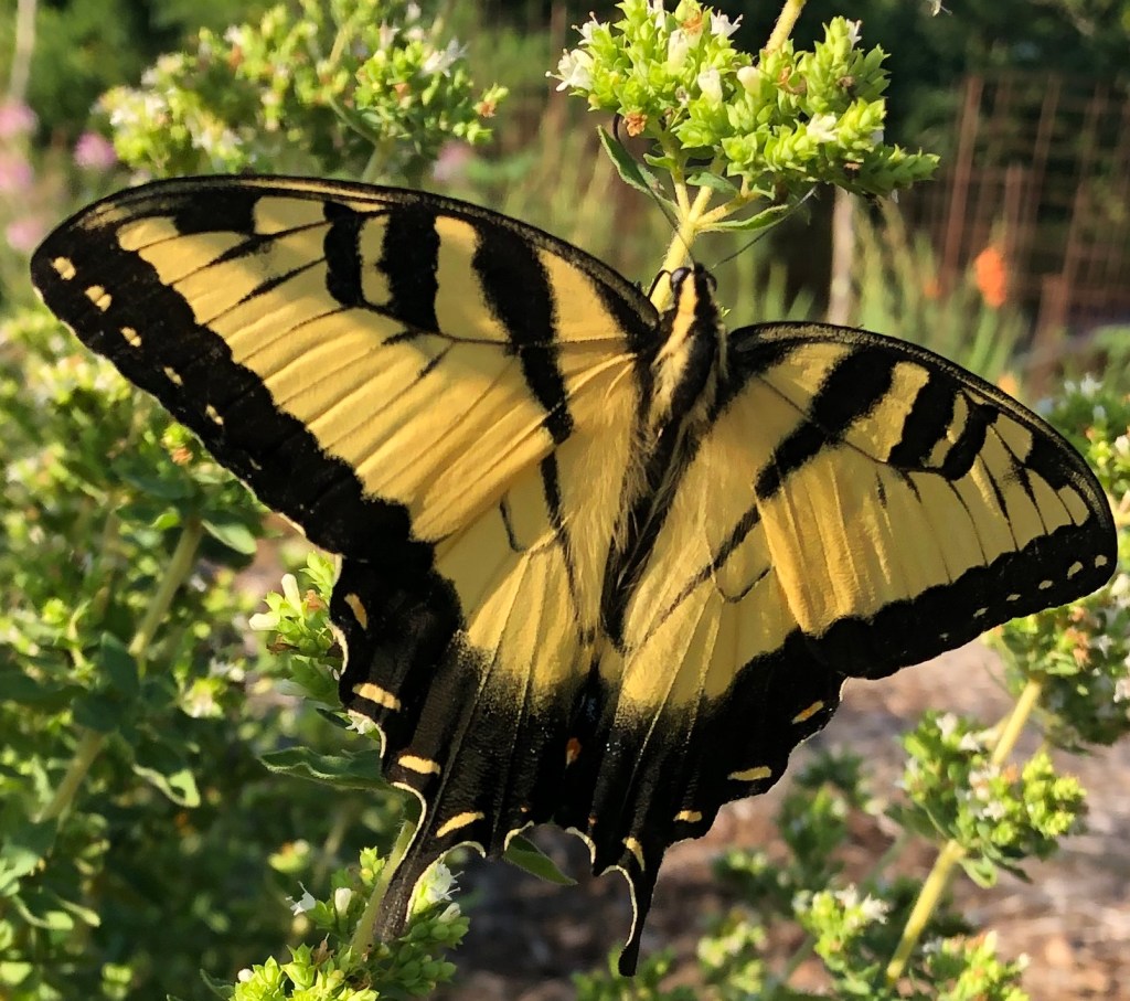 Butterflies are undeterred by garden fences and property lines. Once the appetites of the caterpillar and the constraints of the cocoon have served their purpose, butterflies move freely across borders and boundaries. They have a right of easement to follow the flowers.