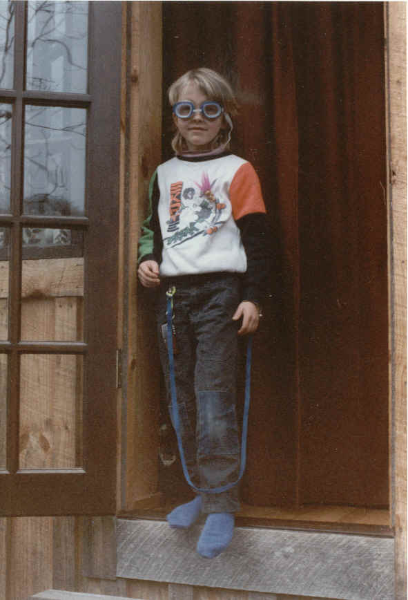 Lofty Brown (Thursday, 2 May 1991) Lauren still very much wants to be considered a boy. Right now she’s a cowboy. Not a cowgirl; a cowboy! She comes up to the community shelter for breakfast dressed the part: faded jeans with a hole in the knee and a western style belt; a brightly colored shirt with a bandanna tied around her neck; a wide-brimmed straw hat; and high-top black rubber boots which serve as cowboy boots.